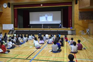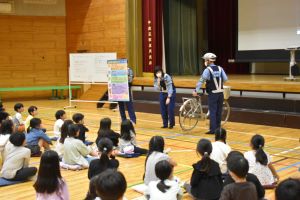 5月1日(水)あいにくの雨模様となりましたが、3時間目に体育館で交通安全教室を行いました。自転車の点検について「ブタハシャベル」をキーワードに学びました。またDVDを見ながら、危険なところがないかチェックし、安全な乗り方についての意識を高めることができました。