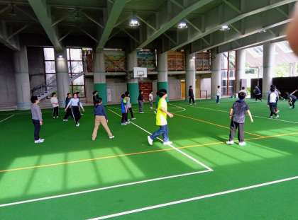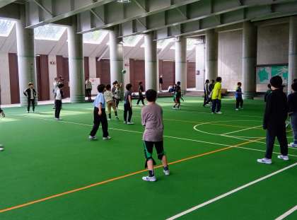 登山の疲れはどこへいったのやら。ただ今、屋根付き広場で楽しく遊んでいます。