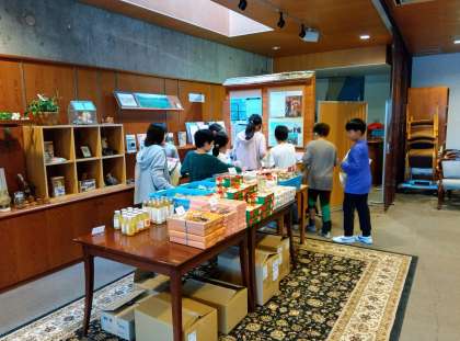 ただ今、なかのビレジにある売店で、希望者がお土産を購入中です。