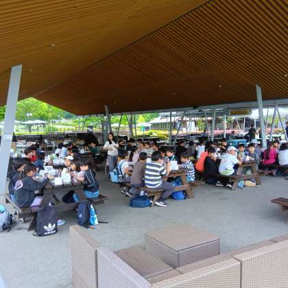 川場移動教室最後のお昼ご飯の様子です。この後は、お土産を買いに行きます。