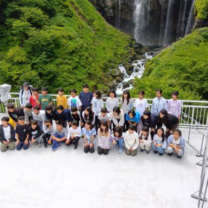 二日目は、天候に恵まれて、ハイキングが終わり、ただ今華厳の滝を見学中です。