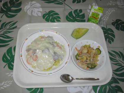 6月4日(月)メニューは、ドリア風、ホワイトグレープキャベツジュース、イタリアンサラダ、メロンです。