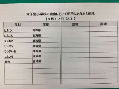 9月12日(木)の給食