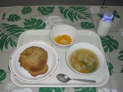 6月20日(水)メニューは、ビスキュイパン、白いんげんの田舎風スープ、フルーツ、牛乳です。