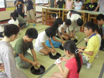 真剣に講師の先生の話を聞き、心こめてお茶をたてました。自分たちでたてたお茶は格別の味だったようです。