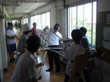本日の避難訓練は、5年1組に不審者が侵入するという想定で、世田谷警察の方のご協力のもと行われました。5年1組の児童が隣の教室に避難し、男性教員がさすまたなどを持って不審者を取り押さえました。体育館に全校児童が避難しロールプレイを見ました。子供たちは、警察の方の話を真剣に聞いていました。