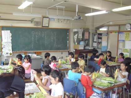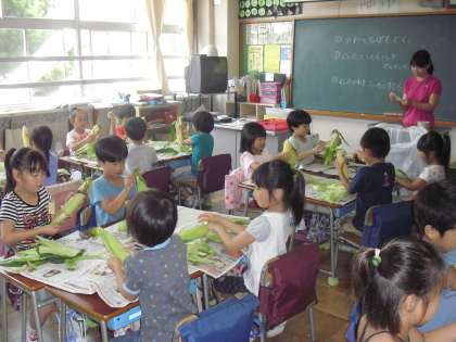7月10日(火)≪1年生 とうもろこしの皮むき≫