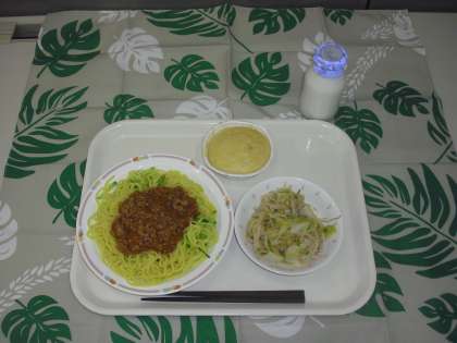 7月13日(金)メニューは、ジャージャー麺、白菜の中華サラダ、マーラカオ、牛乳です。