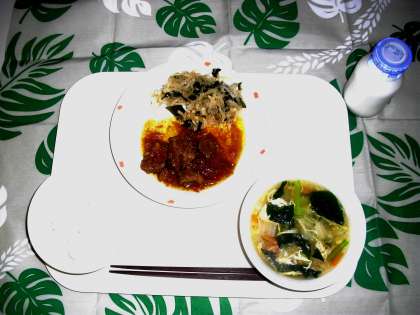 9月13日(木)メニューは、ごはん、豚肉のマーマレード煮、じゃこサラダ、白菜と鶏肉のスープです。