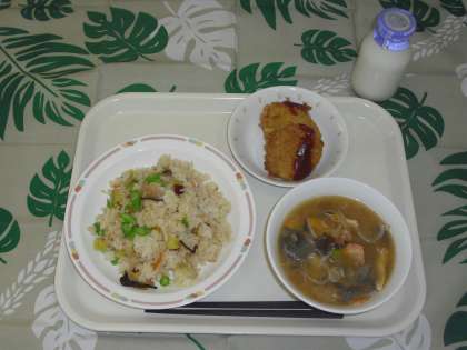 9月14日(金)メニューは、秋の香りごはん、みそ汁、豆腐入りチキンナゲット、牛乳です。