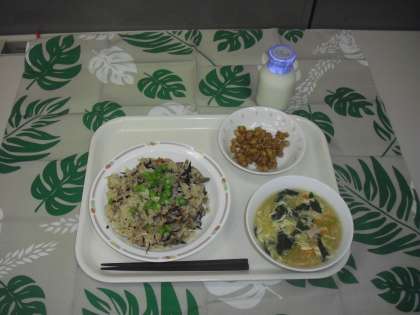 9月25日(火)メニューは、ひじきごはん、白玉スープ、大豆とじゃこの甘辛揚げ、牛乳です。