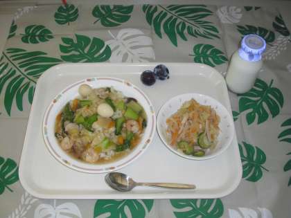 10月5日(金)メニューは、中華丼、春雨サラダ、巨峰、牛乳です。
