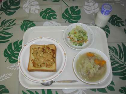 10月10日(水)メニューは、ツナトースト、ポトフ、フレンチサラダ、牛乳です。