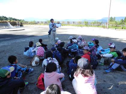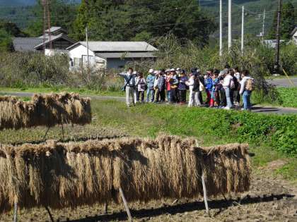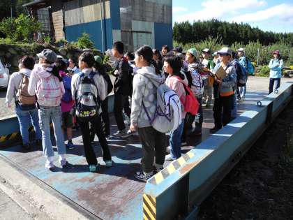 稲刈りの終わった田んぼの様子を見たり、トラック用の体重計にみんなで乗ってみたりしました。