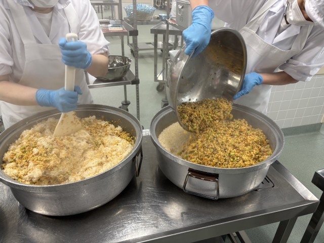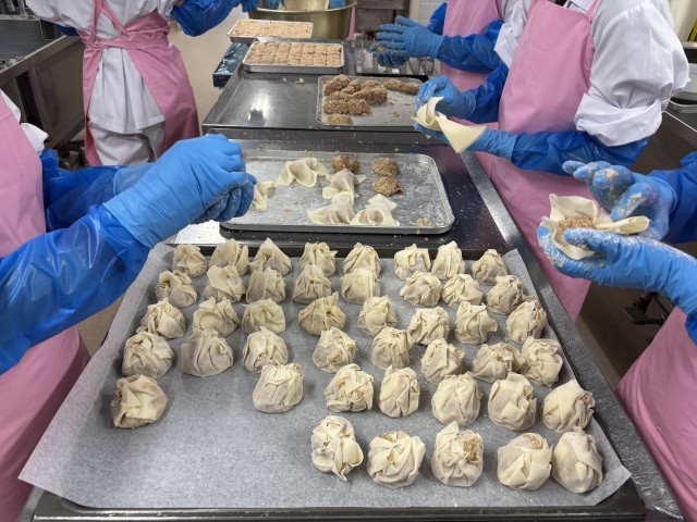 調理さんが一個ずつ、大きな皮で具を包んでくれました。