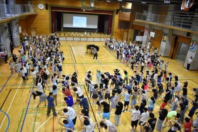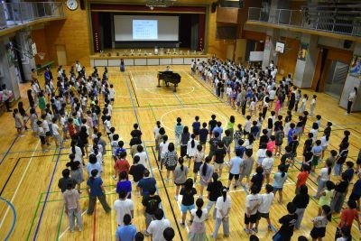 6月20日(金)今日は音楽集会です。6月の歌は「にじ」です。歌う前にみんなでウォーミングアップをして、体の調子を整えます。高学年の姿勢を手本に、全校児童できれいな歌声を体育館内に響かせました。2学期の音楽会が今から楽しみです。