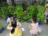 9月27日(水)1年生が育てた朝顔の蔓でリースを作りました。保護者の方や小1ボラ...