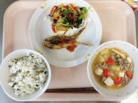 (献立)わかめごはんししゃもの南蛮酢おひたし豚汁牛乳ししゃもの南蛮酢は、揚げたし...