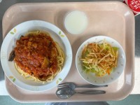 (献立)和風しょうゆスパゲッティビーンズサラダカフェオレゼリー牛乳和風しょうゆス...