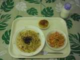 1月22日(火)メニューは、和風スパゲティー、にんじんサラダ、シナモンポテト、牛乳です。