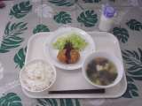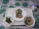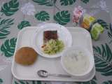 1月25日(金)メニューは、ごはん、ポテトコロッケ、ゆでキャベツ、わかめのスープ、牛乳です。