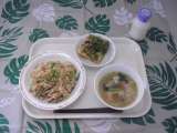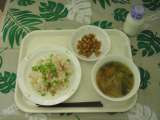 1月17日メニューは、中華おこわ、ワンタンスープ(皮のみ)、お好み焼き、牛乳です。
