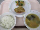 ◆◇今日の献立◇◆ ごはん むろあじバーグ ごま酢和え じゃがいもとわかめのみそ...