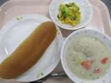 ◆◇今日の献立◇◆ あしたばパン 肉団子のクリームシチュー キャロットソースサラ...