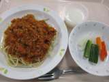 ◆◇今日の献立◇◆ スパゲティミートソース せたがやピクルス カルピスゼリー 牛...
