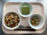 ◆◇今日の献立◇◆ ごはん 松風焼き 塩和え なめこのみそ汁 牛乳