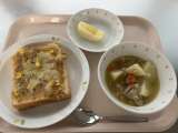 ◆◇今日の献立◇◆ コーン入りツナトースト 豆入りポトフ りんご 牛乳