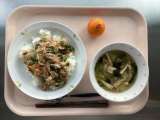 ◆◇今日の献立◇◆ ねぎ塩豚肉丼 じゃがいもと小松菜のみそ汁 ポンカン 牛乳