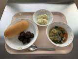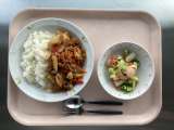 ◆◇今日の献立◇◆ コッペパン くじらのマリアナソース パセリポテト 野菜スー...