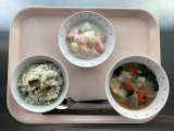◆◇今日の献立◇◆ じゃこと野沢菜のごはん すいとん フルーツヨーグルト 牛乳...