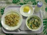 本日のメニュー『中華おこわ・麻婆汁・白菜の中華サラダ・牛乳』