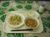 本日のメニュー『カレーライス・福神漬け・こんにゃくサラダ・みかん・牛乳』