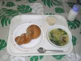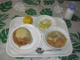 本日のメニュー『セルフフィッシュサンド・ミネストローネ・巨峰・牛乳』