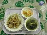 本日のメニュー「ビビンバ・わかめスープ・白菜キムチ・牛乳」