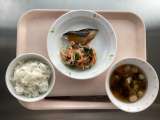◆◇今日の献立◇◆ ごはん さばの梅ソース ごま酢和え すまし汁 牛乳