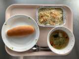 ◆◇今日の献立◇◆ ミルクパン 鮭ときのこのグラタン ジュリエンヌスープ 牛乳...