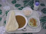 12月12日(水)メニューは、キーマカレー、ナン、パリパリサラダ、フルーツヨーグルト、牛乳です。