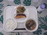 12月13日(木)メニューは、鮭の味噌マヨネーズ焼、野菜のからししょうゆあえ、みそ汁、牛乳です。