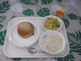 12月5日(水)メニューは、ビスキュイパン、マカロニのクリーム煮、イタリアンサラダ、みかんジュースです。