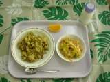 2月28日のメニュー『チキンカレーライス・こんにゃくサラダ・ネーブル・牛乳』