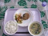 本日のメニュー『ごはん・鯖のごまだれがけ・煮ひたし・かき玉汁・牛乳』