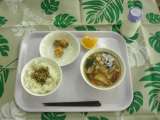 本日のメニュー『ひじきごはん・豚汁・いちご・牛乳』