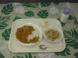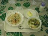 本日のメニュー『ナシゴレン・白玉スープ・杏仁豆腐・牛乳』