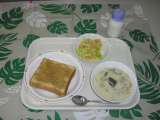 本日のメニュー『セサミトースト・パンプキンシチュー・フレンチサラダ・牛乳』