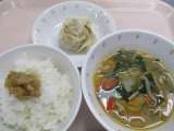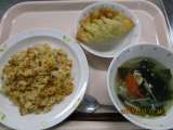 ◆◇今日の献立◇◆ キムチチャーハン ジャンボ揚げぎょうざ わかめスープ 牛乳 ...