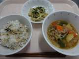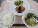 ◆◇今日の献立◇◆ ごはん むろあじのメンチカツ からし和え じゃがいもとわかめ...